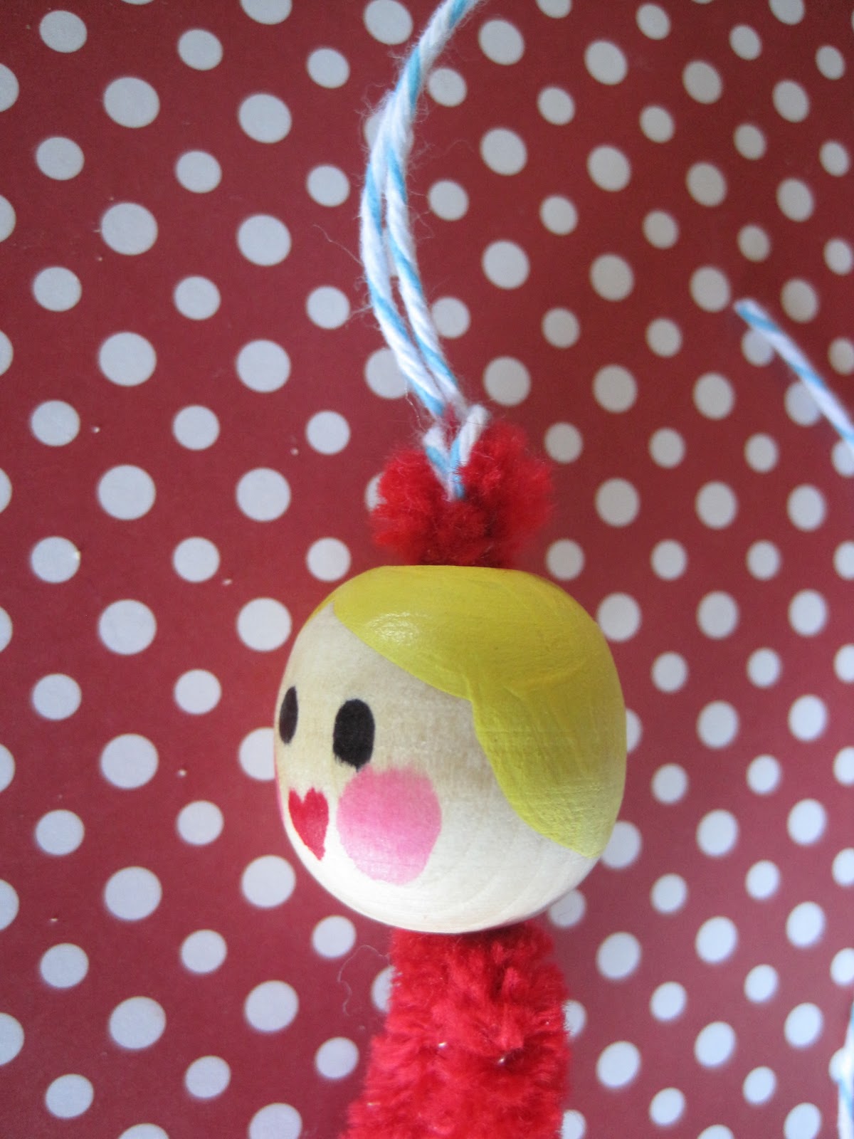 The head is a little wooden bead, I drew the face on with sharpie and painted the hair.
